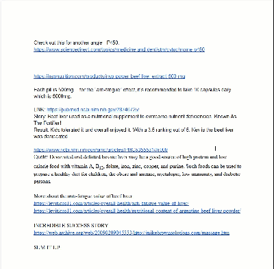 That is a 26 page Google Doc of my notes on "beef liver" for a sales letter I wrote for one of my companies.